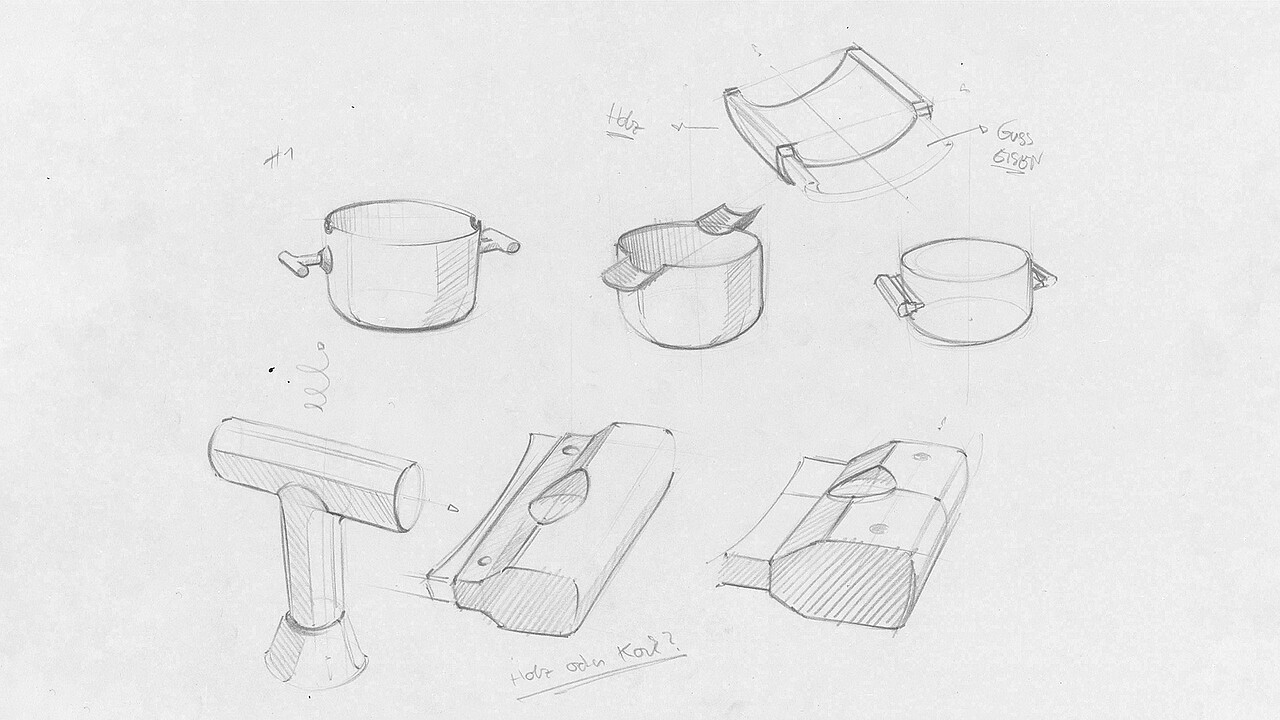 Das Projekt Junge Töpfe wurde im Rahmen der Lehrveranstaltung Gestalten an der FH Joanneum durchgeführt. Die Aufgabe bestand darin, einen Kochtopf zu entwerfen, der anschließend in Gusseisen gegossen wurde. Die halbrunden Henkel des Topfes dienen zur Handhabung, aber auch als Ablage für einen Kochlöffel. Entstehungsjahr 2022.